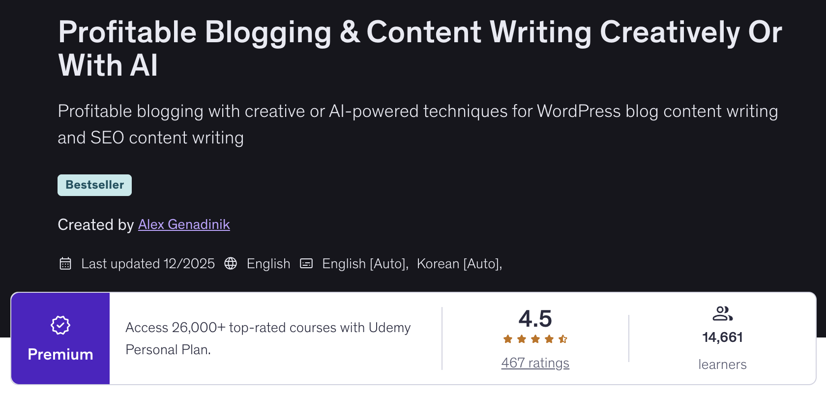 "The course covers everything from understanding your target audience and crafting compelling content to optimizing it for search engines and monetizing your blog effectively."