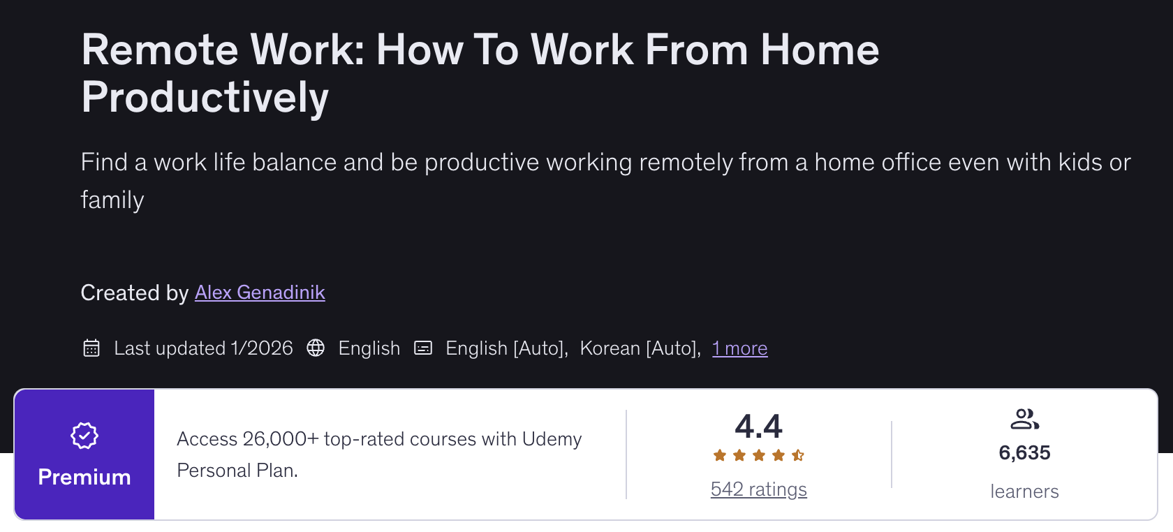 "Helpful course on working remotely better, and getting more done even if you have family around, or you have challenges with other distractions."