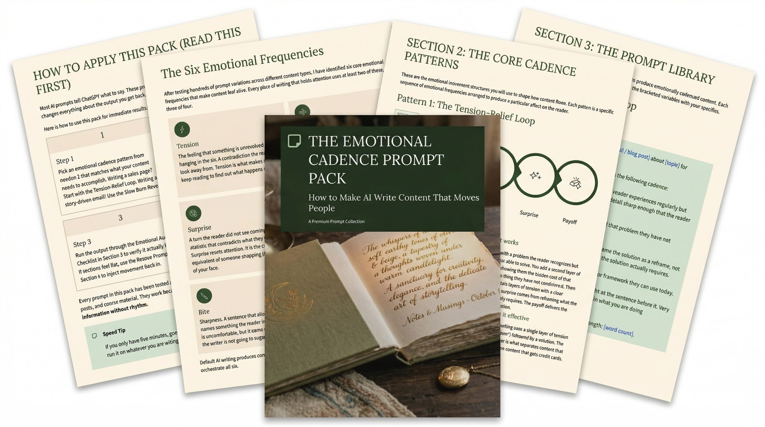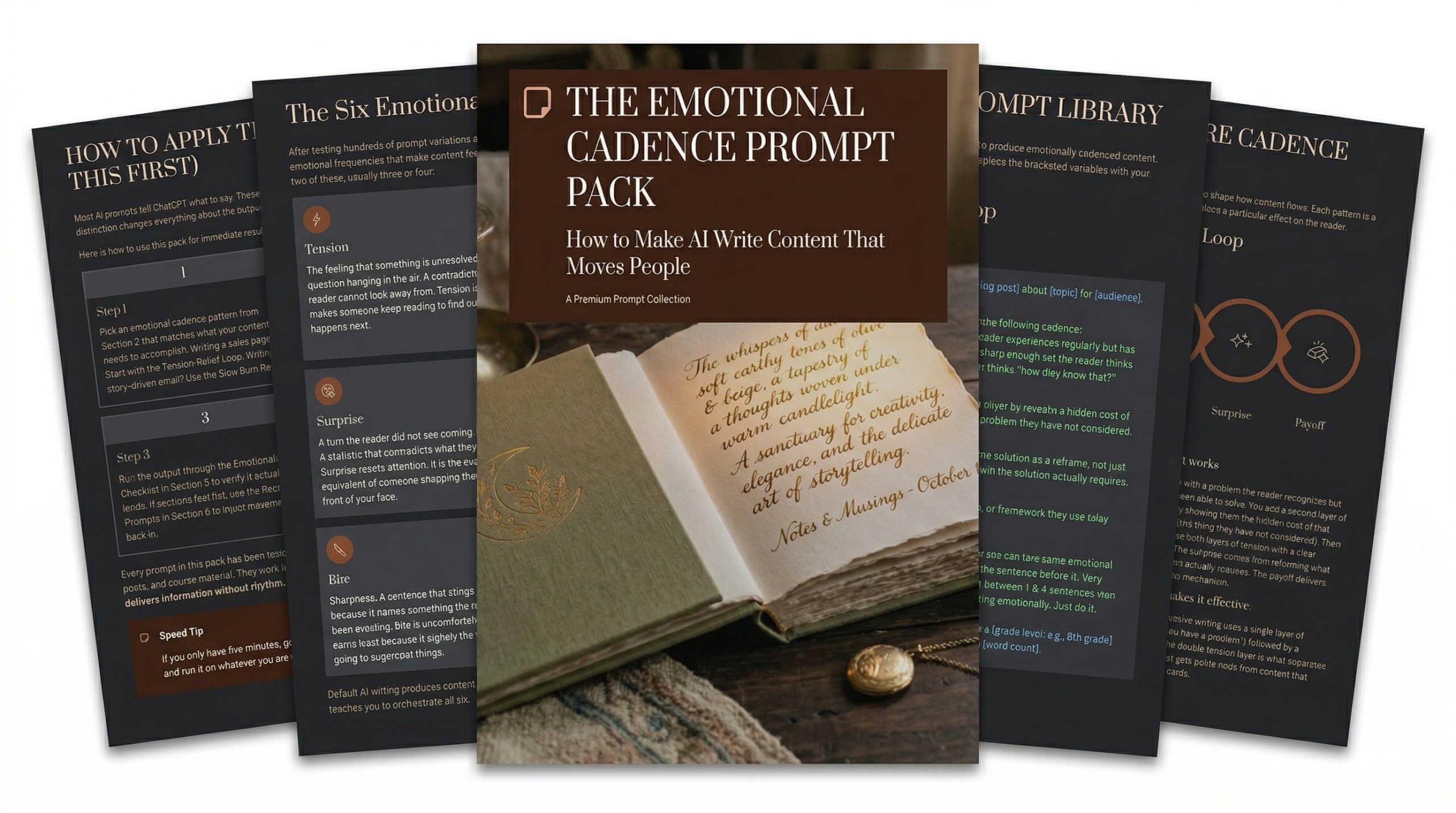 Most prompt packs tell the AI what to say. This one tells it how to feel while saying it. Built around 6 emotional frequencies (Tension, Relief, Surprise, Warmth, Bite, Payoff) and 4 core cadence patterns that orchestrate those frequencies into content that actually holds attention past the first paragraph.