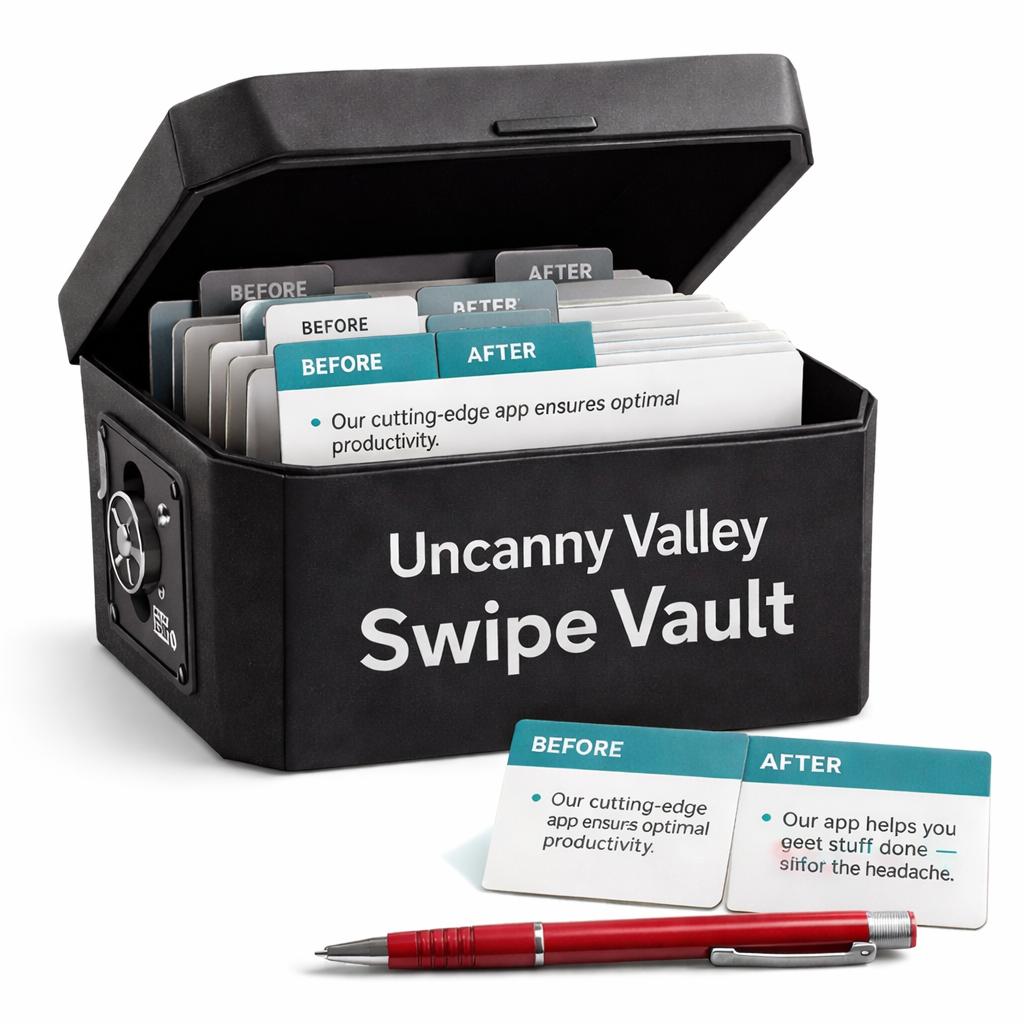 Why this product matters in the system: Some people learn by reading instructions. Others need to see real examples. This swipe vault is for the second group. Where the ebook teaches "why" and the prompt packs give you "what to type," this product shows you "what the result should look like" so your customers have a reference to compare their own rewrites against.
